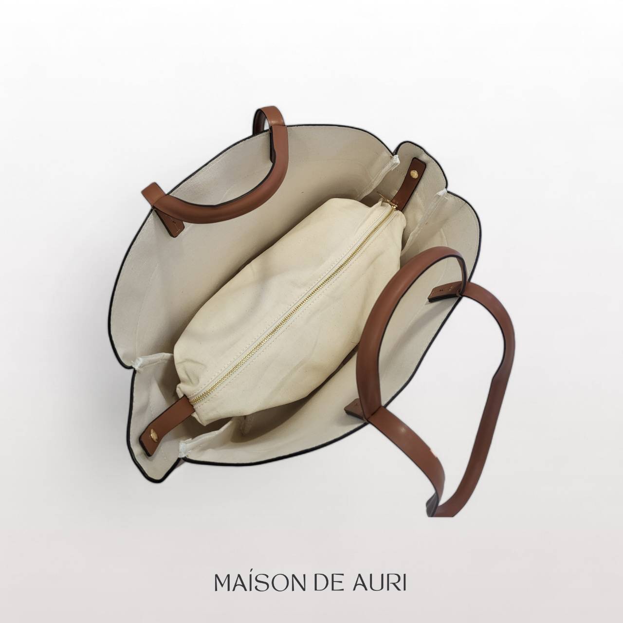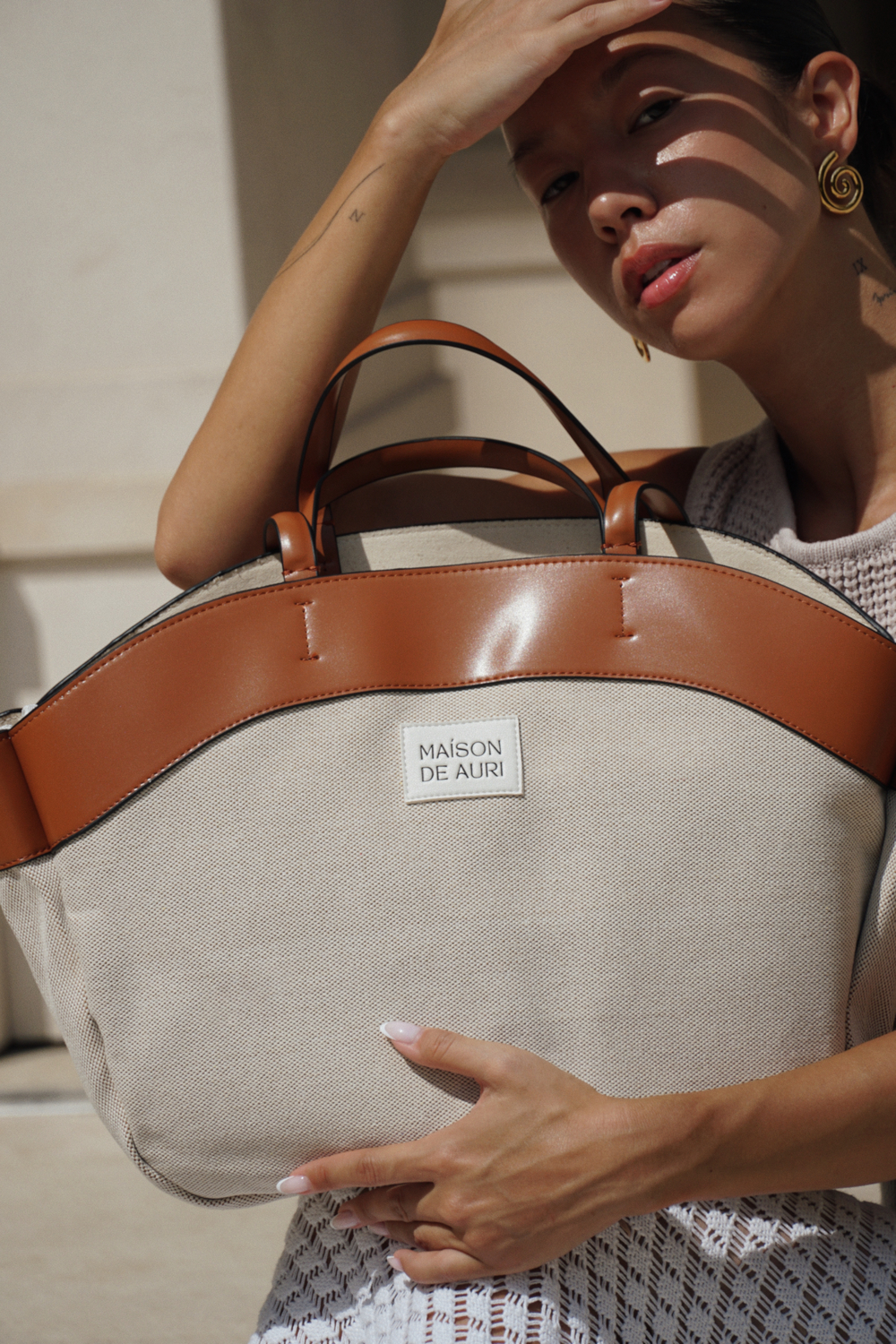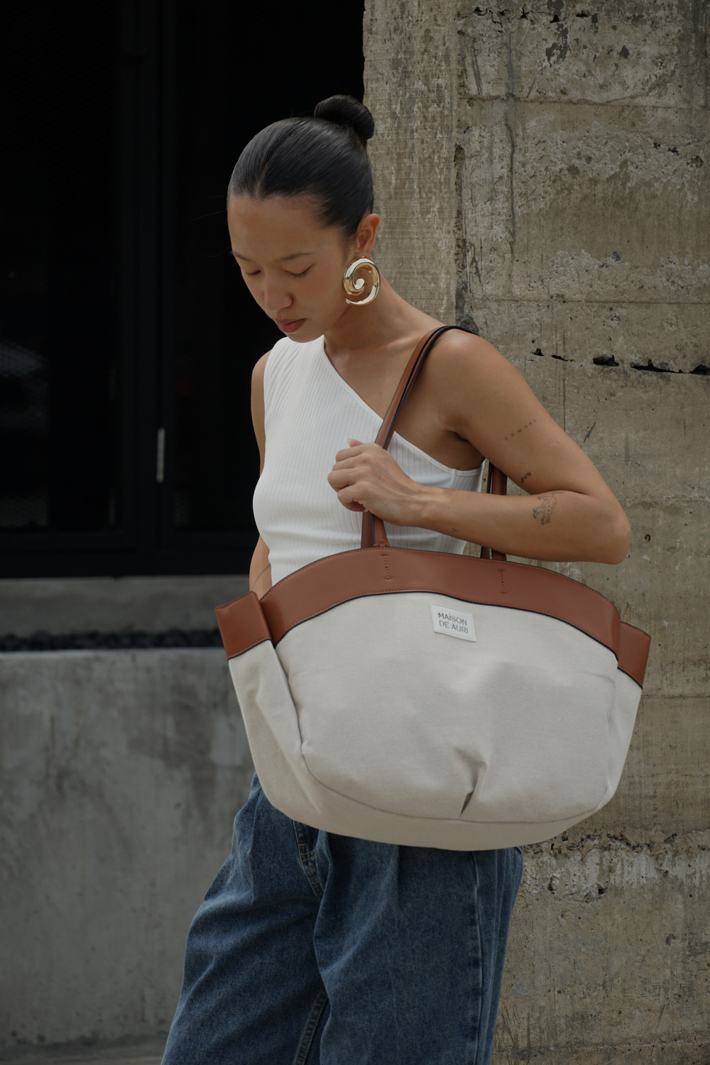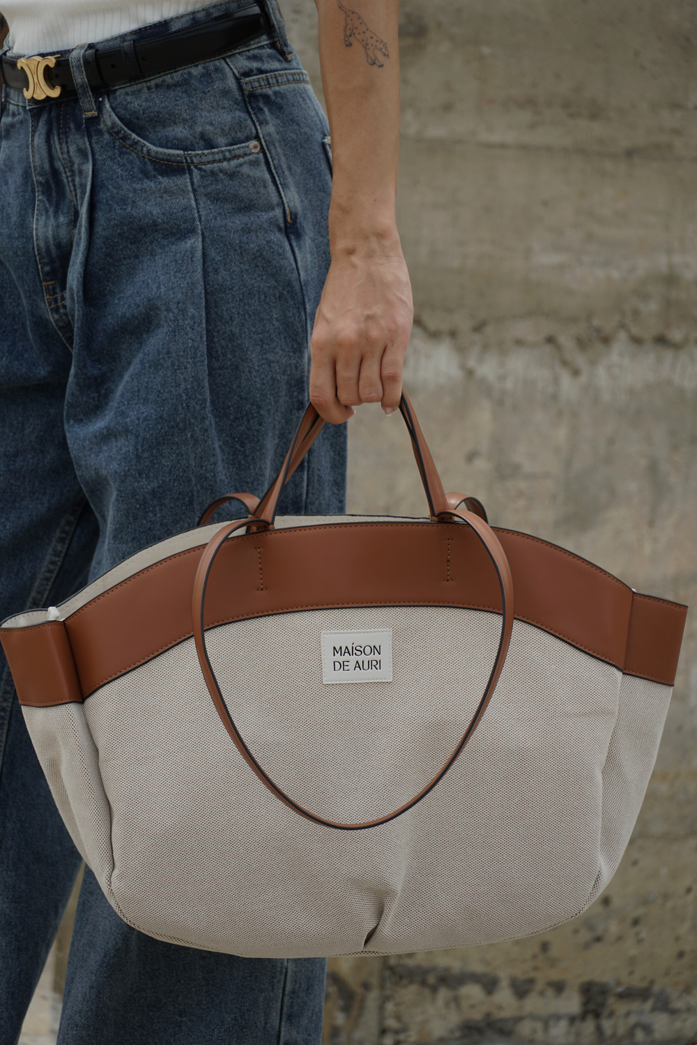 米白帆布搭配如橡木般溫潤厚實的棕色皮革,散發出沉穩的復古氣息。