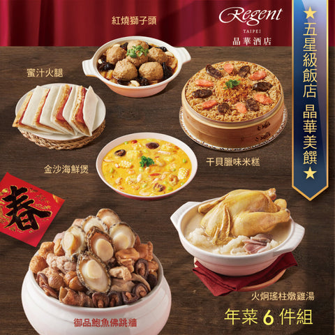 年菜6件組(佛跳牆+雞湯+干貝米糕+海鮮煲+蜜汁火腿+獅子頭)