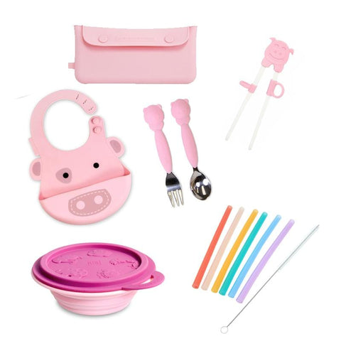 大寶快樂吃喝組(叉匙+筷子+立體圍兜+摺疊碗+收納袋+吸管)