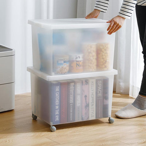 可層疊掀蓋式霧透整理箱-45L-3入-送1組專屬可拆式滑輪