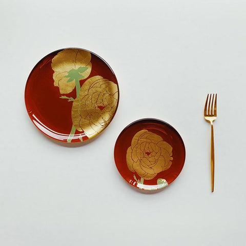 最初_ 雙圓(中+小)器皿 x First_ Gold Foil Round Glass Plate