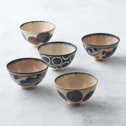 日本美濃燒 - 筆青釉繪飯碗-禮盒組(5件式)