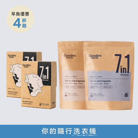【零殘污4件組】超淨力除臭洗衣膠囊*2袋(任選香型)+七酵急救衣物去漬筆2盒(3支/盒)