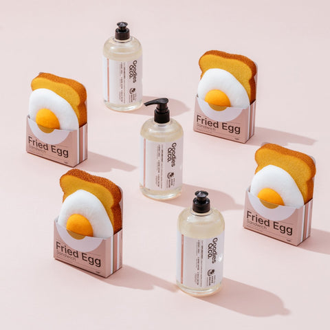 蔬果碗盤濃縮洗碗精*2、荷包蛋吐司清潔海綿組*1