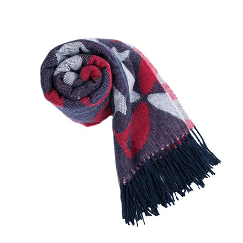 玉樹高原金魚氂牛絨披肩 - 靛藍/胭脂红/米白