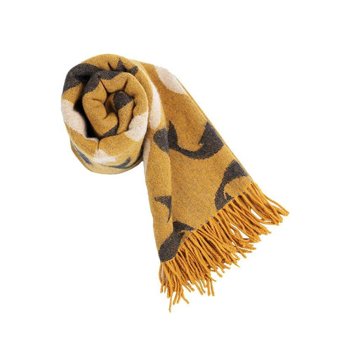 玉樹高原金魚氂牛絨披肩 - 向日葵黃/靛蓝/米白