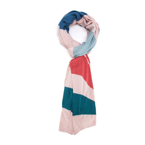 玉樹高原金魚氂牛絨披肩 - 靛藍/胭脂红/米白