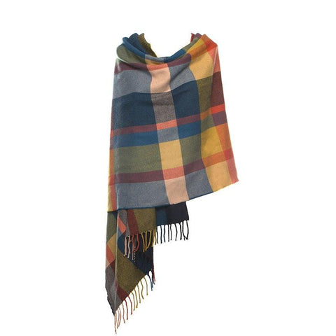 復古格紋流蘇氂牛絨披肩(2色可選)