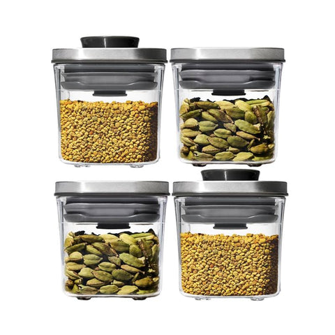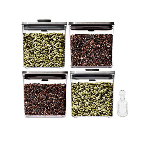 POP 2.0 正方按壓保鮮盒-4件組(0.4L+1L+1.6L+2.1L) 贈POP匙 (125ml)