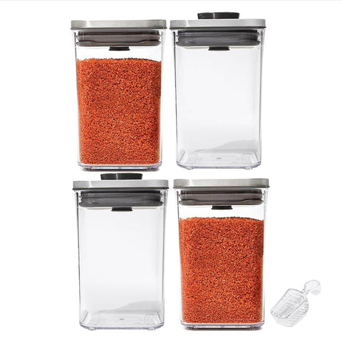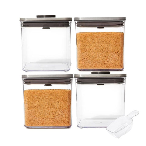 POP 不鏽鋼按壓保鮮盒 - 正方1L(4入) 贈篩粉匙