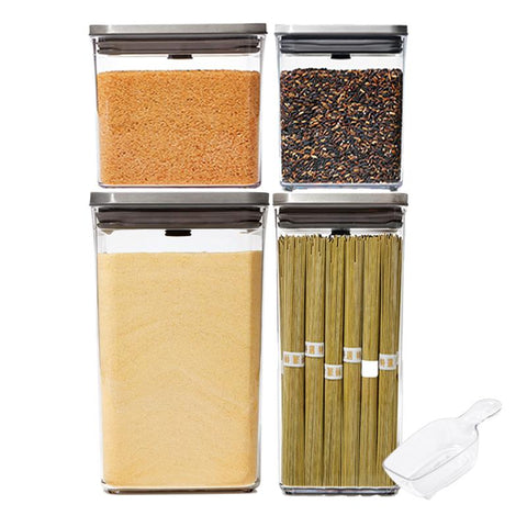 POP 不鏽鋼按壓保鮮盒 - 長方2.6L(4入) 贈POP匙 (125ml)