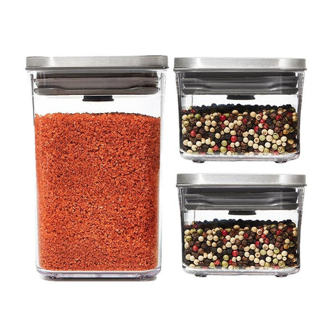 POP 2.0 細長方按壓保鮮盒-3件組(0.4L/1.1L/1.8L) 贈POP匙 (125ml)