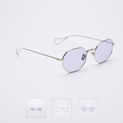 1980 純正老銀框復古設計 八角眼鏡 亮銀鏡框*淺紫色鏡片 不銹鋼金屬鏡框