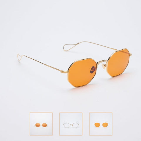 1980 純正老金框復古設計 八角眼鏡 老金鏡框*落日橘色鏡片 不銹鋼金屬鏡框
