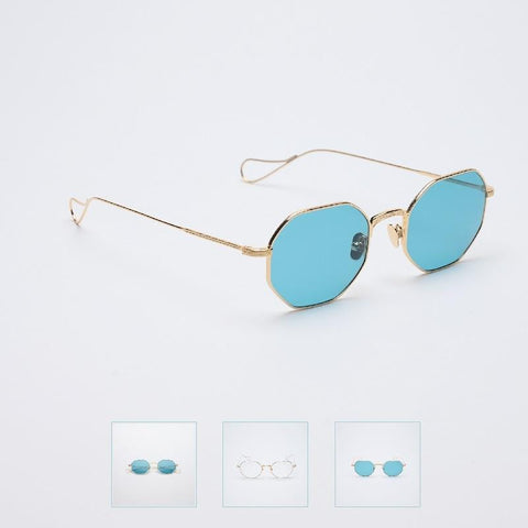 Vatic 1980 純正老金框復古設計 八角眼鏡 老金鏡框*第凡內藍色鏡片 不銹鋼金屬鏡框
