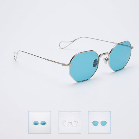 1980 純正老銀框復古設計 八角眼鏡 亮銀鏡框*第凡內藍色鏡片 不銹鋼金屬鏡框