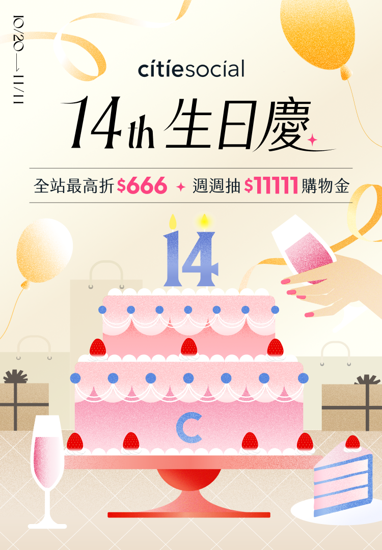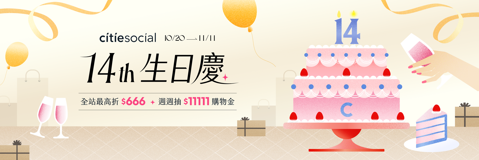 - 【citiesocial 2025 14th 生日慶】優惠時間:2025/10/20 (一) 11:00 - 2025/11/11 (二) 23:59。