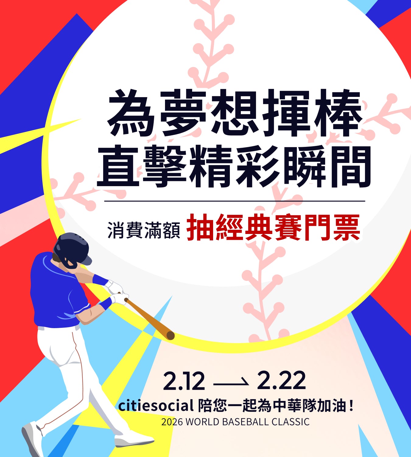 活動名稱:citiesocial 2026 世界棒球經典賽|為夢想揮棒,直擊精彩瞬間