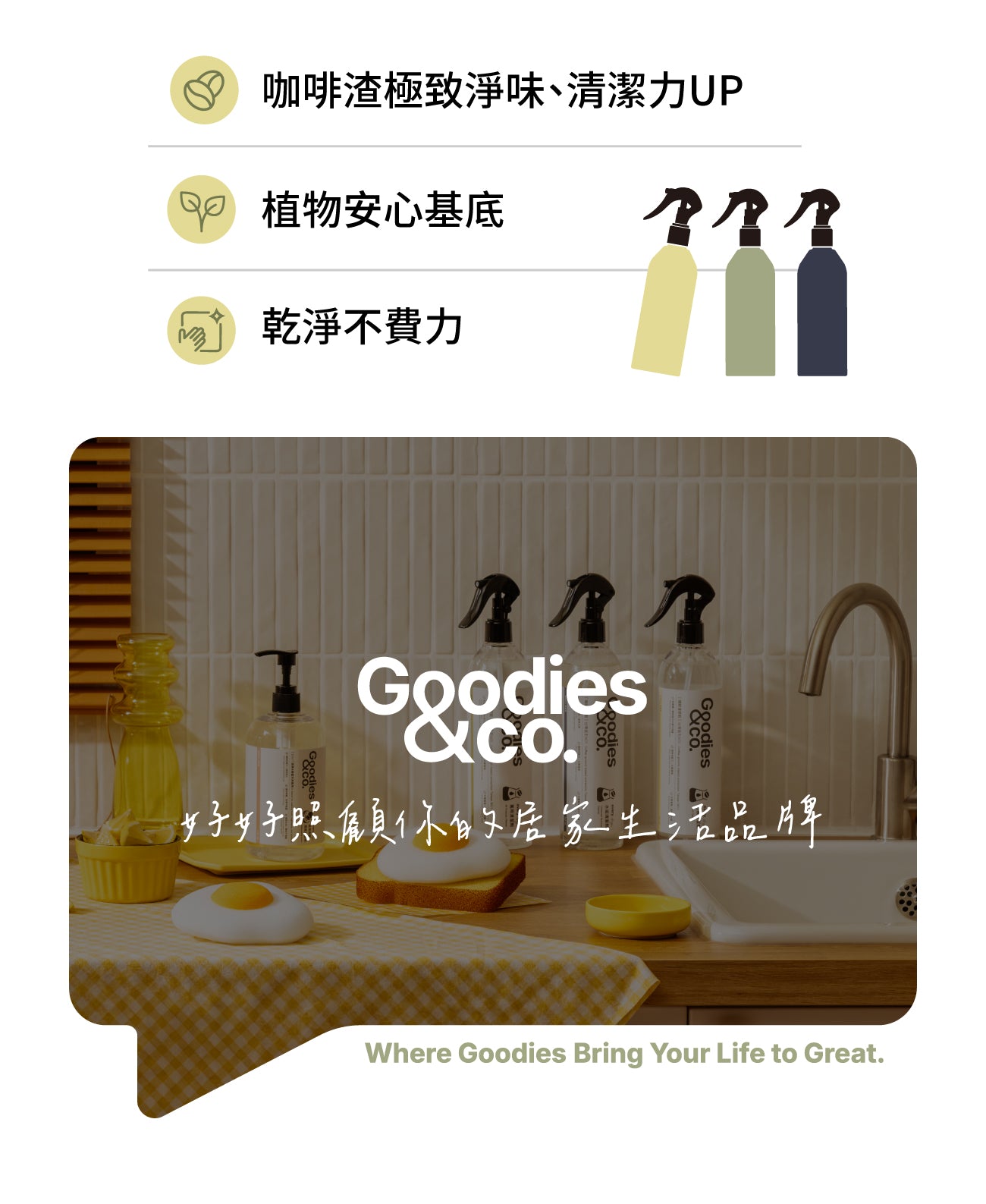 Goodies&co 為 citiesocial 旗下自有品牌,延續找好東西、過好生活的精神,成為一個專注於「好好照顧你」的居家生活品牌。