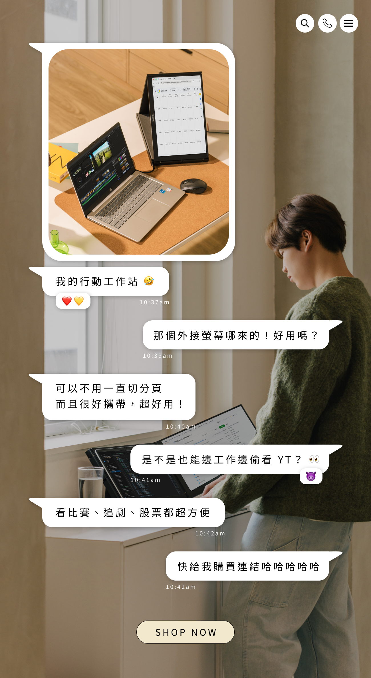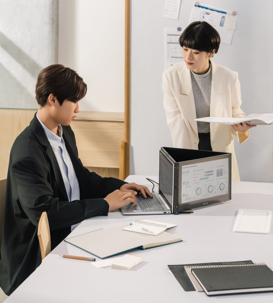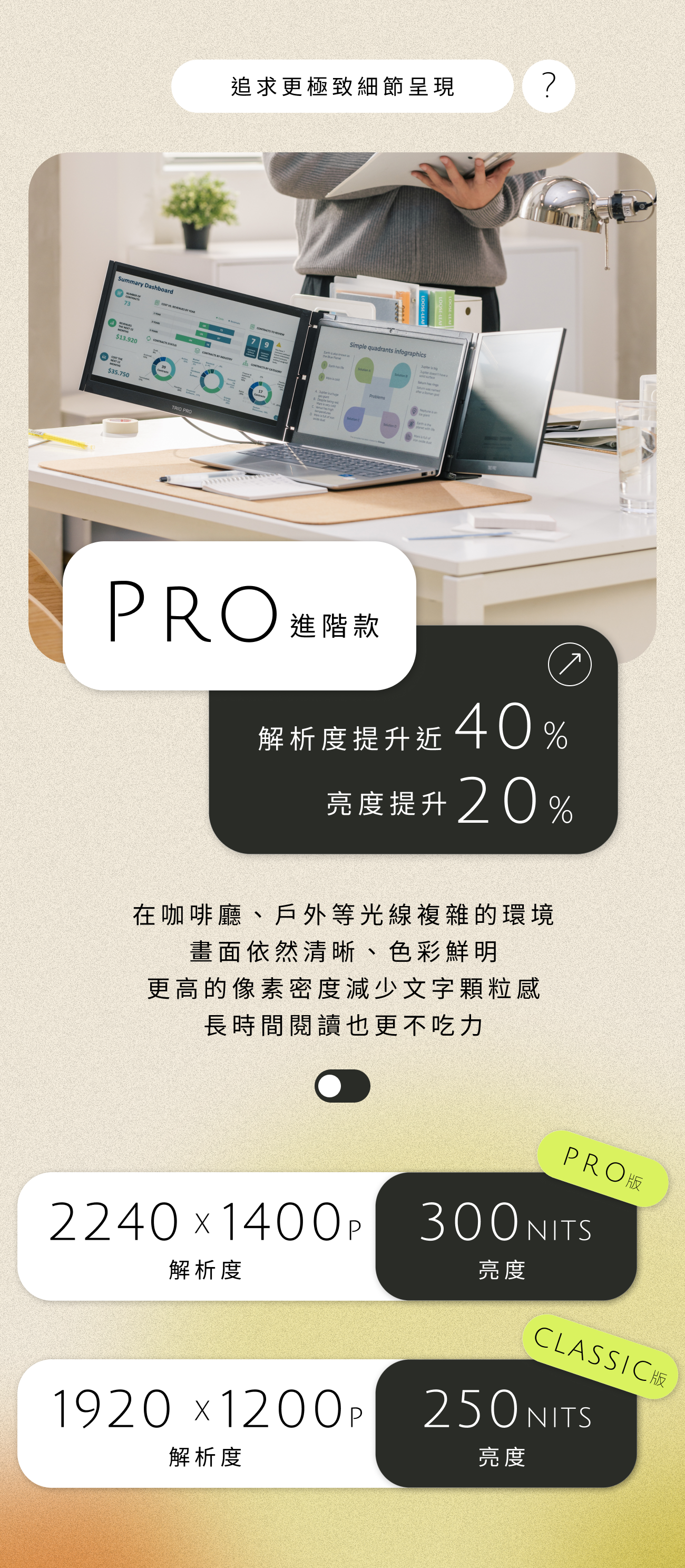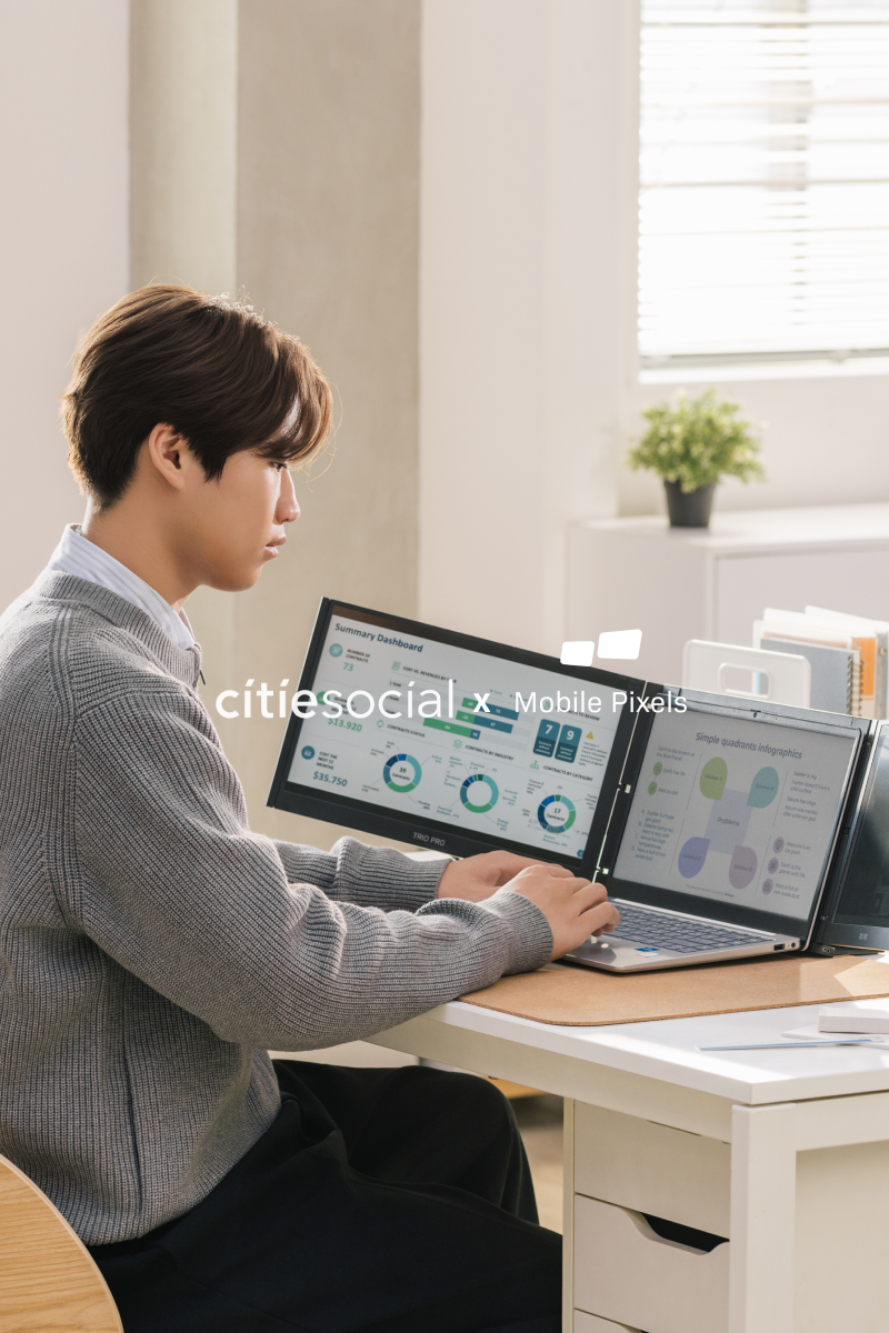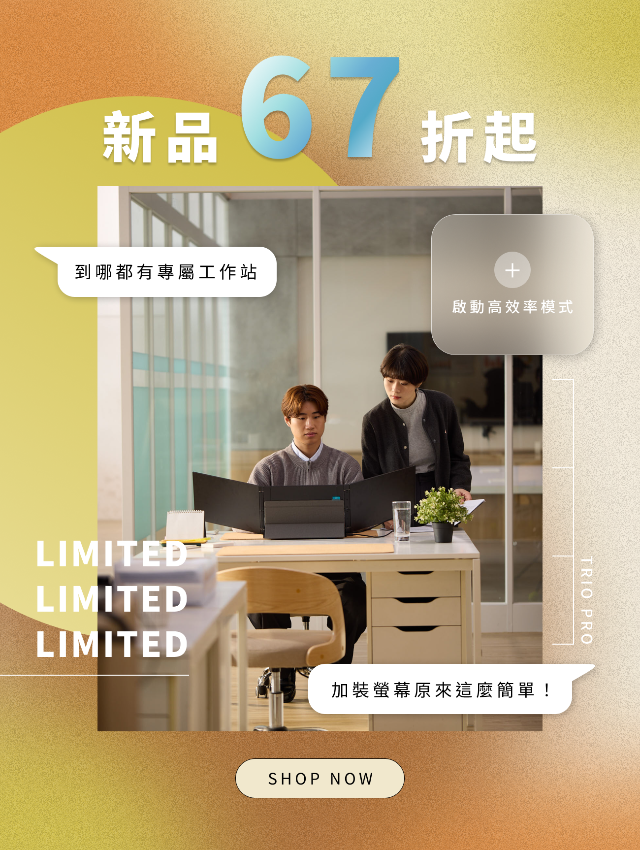 由創辦人 Jack 與 Stephen 在多年職場經驗中誕生。當時他們被單螢幕限制、不停切換視窗的日子,為了改善效率與身心壓力,他以設計專業為起點,著手打造能真正提升使用者工作體驗的行動多螢幕解決方案