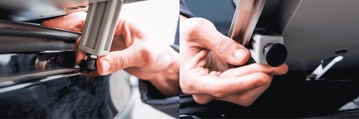 2. 拉出兩側支撐腳,並確保兩支腳抵住車輛。