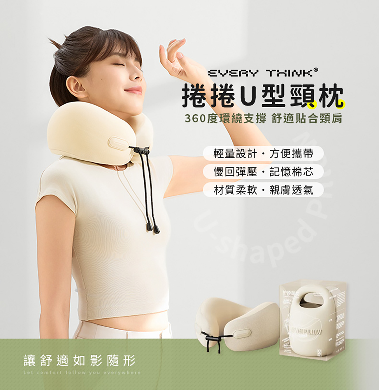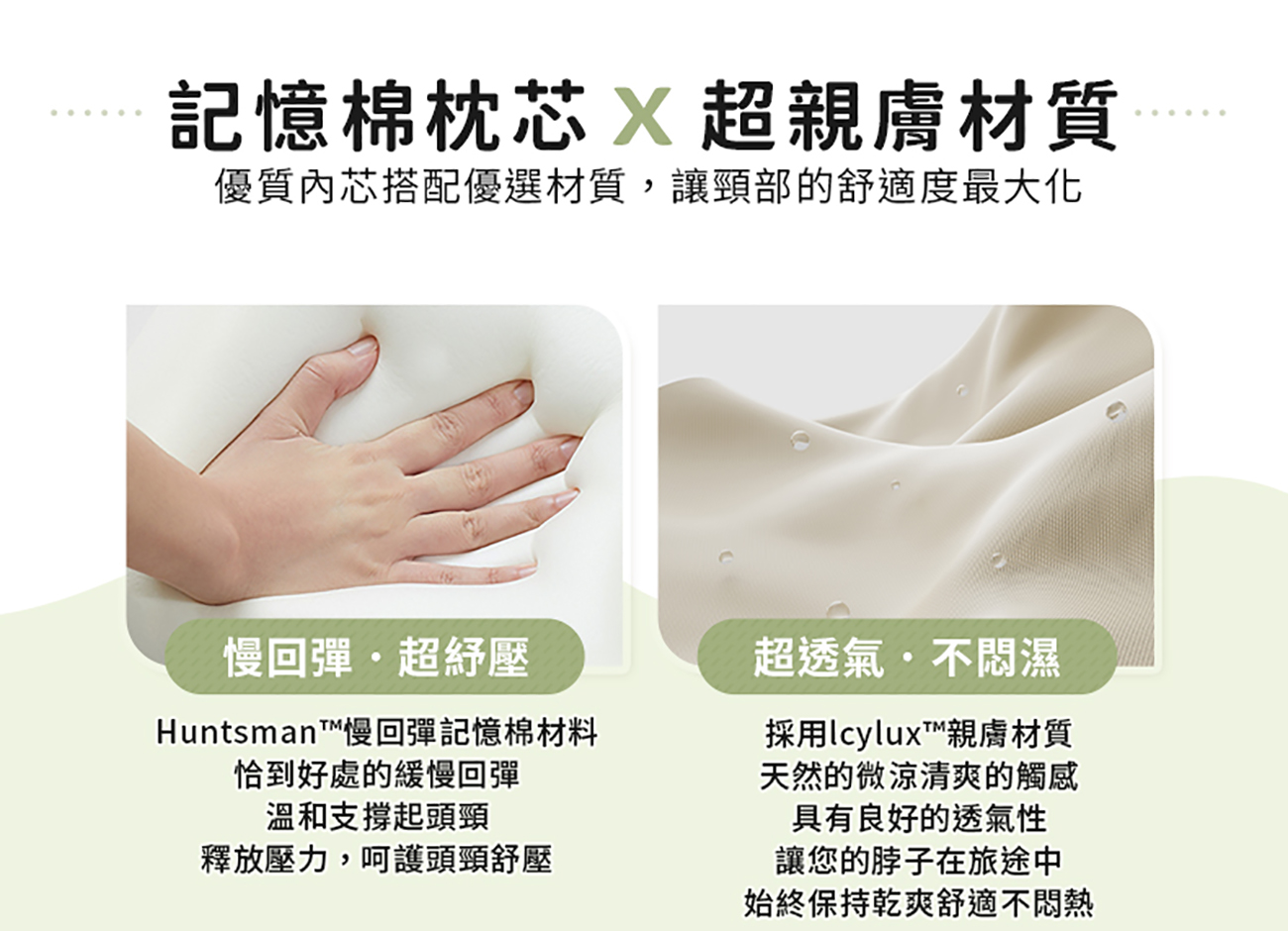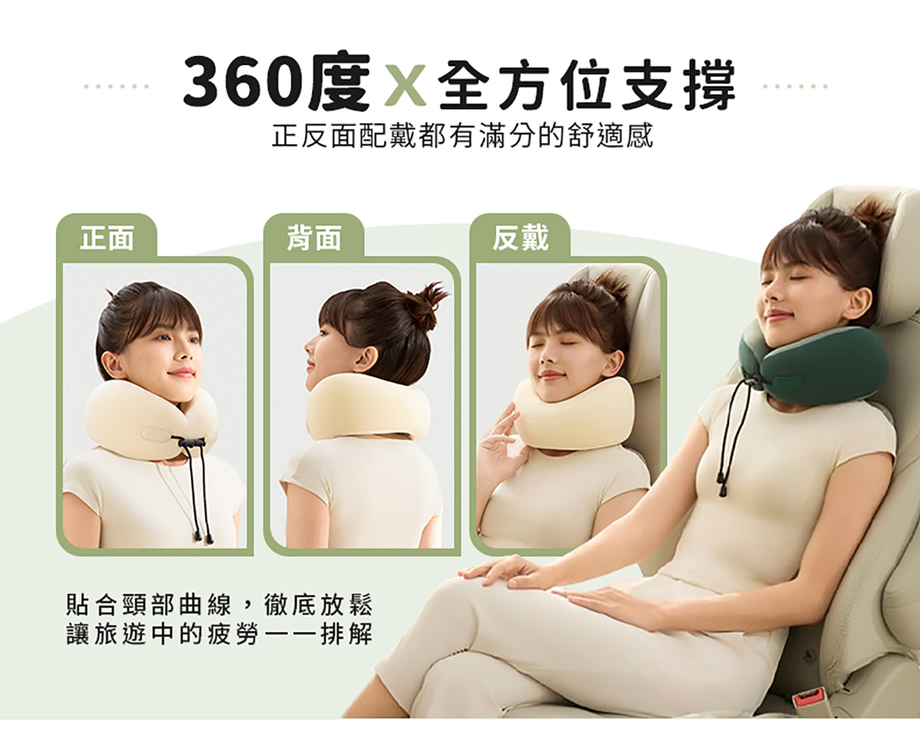 - 360度環繞支撐 貼合頸肩