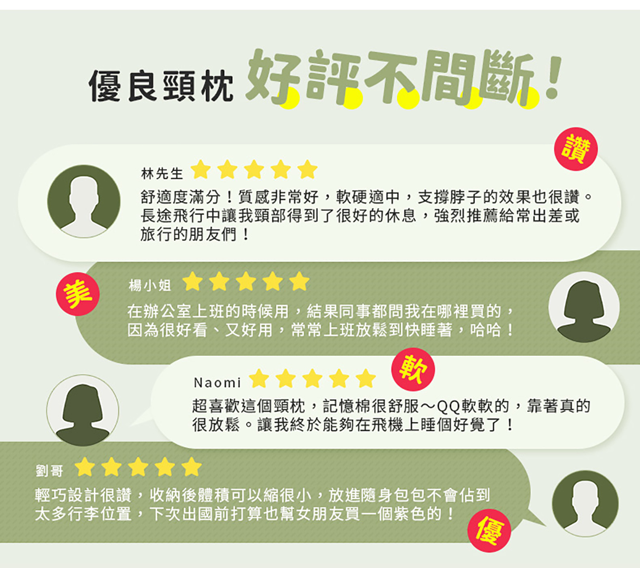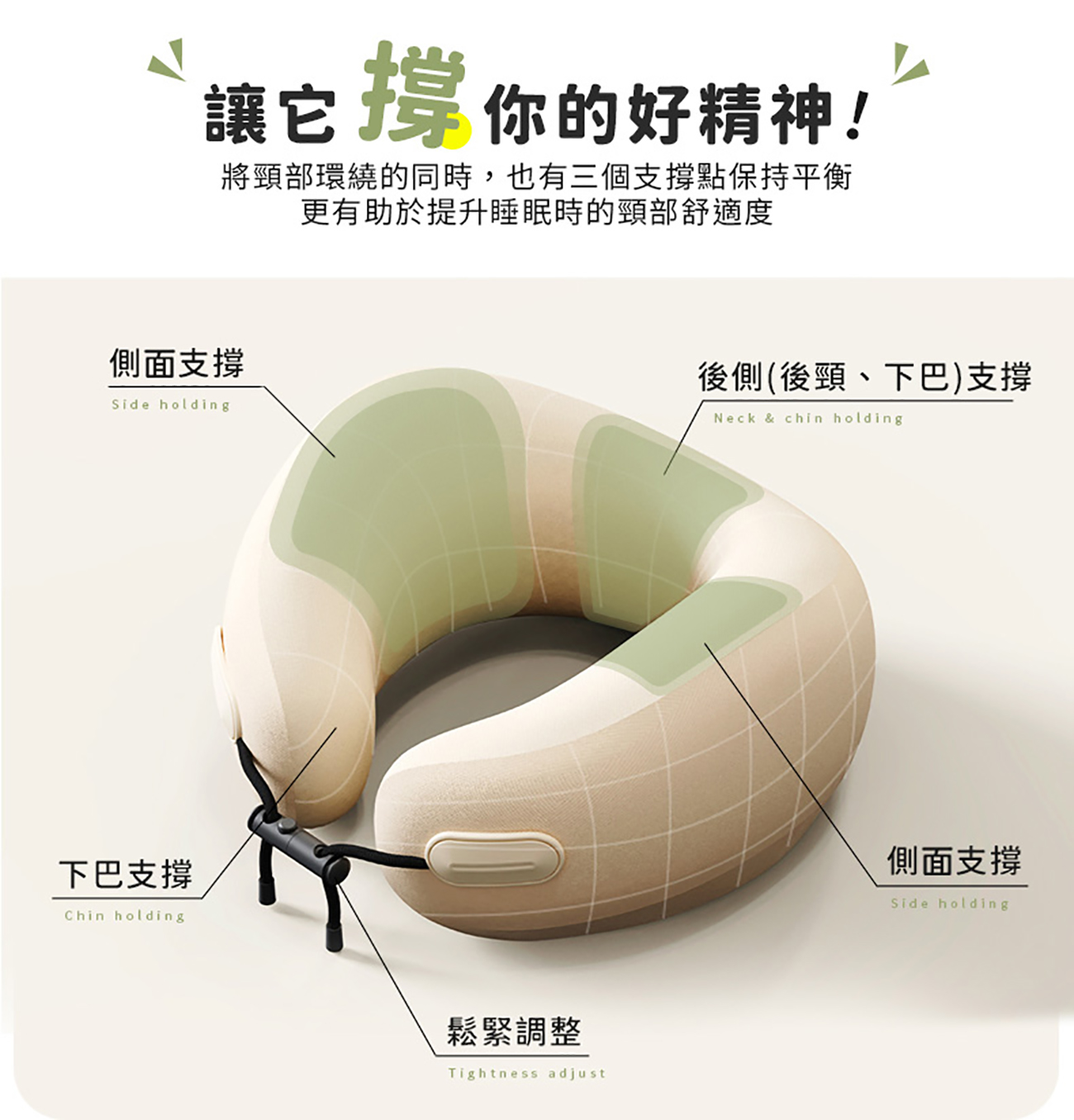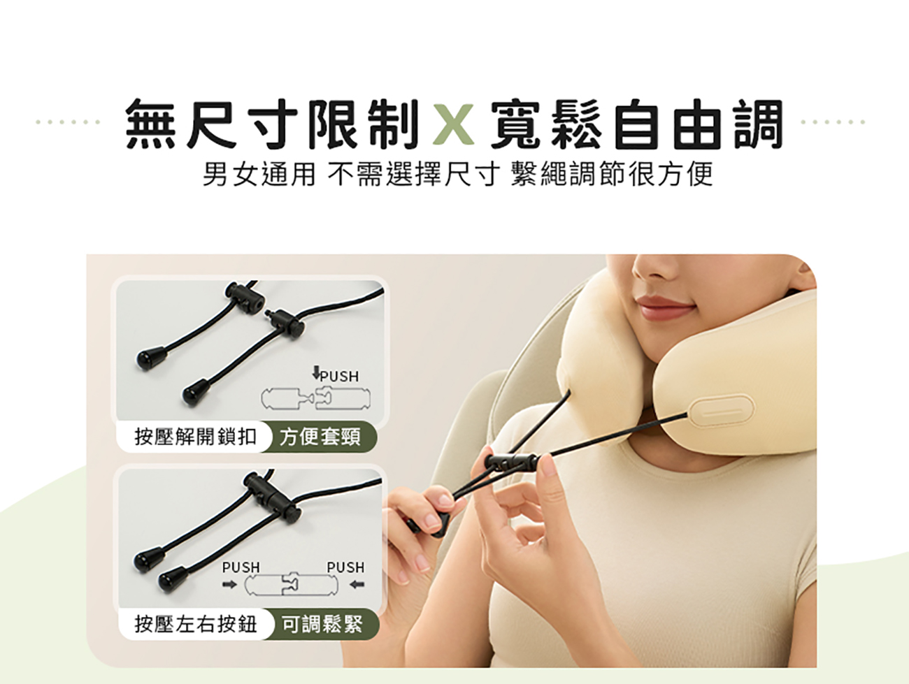 - 360度環繞支撐 貼合頸肩