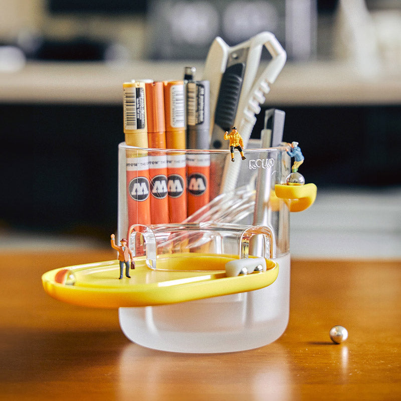 移動式牙刷收納格+鏡子套組 - 天空藍